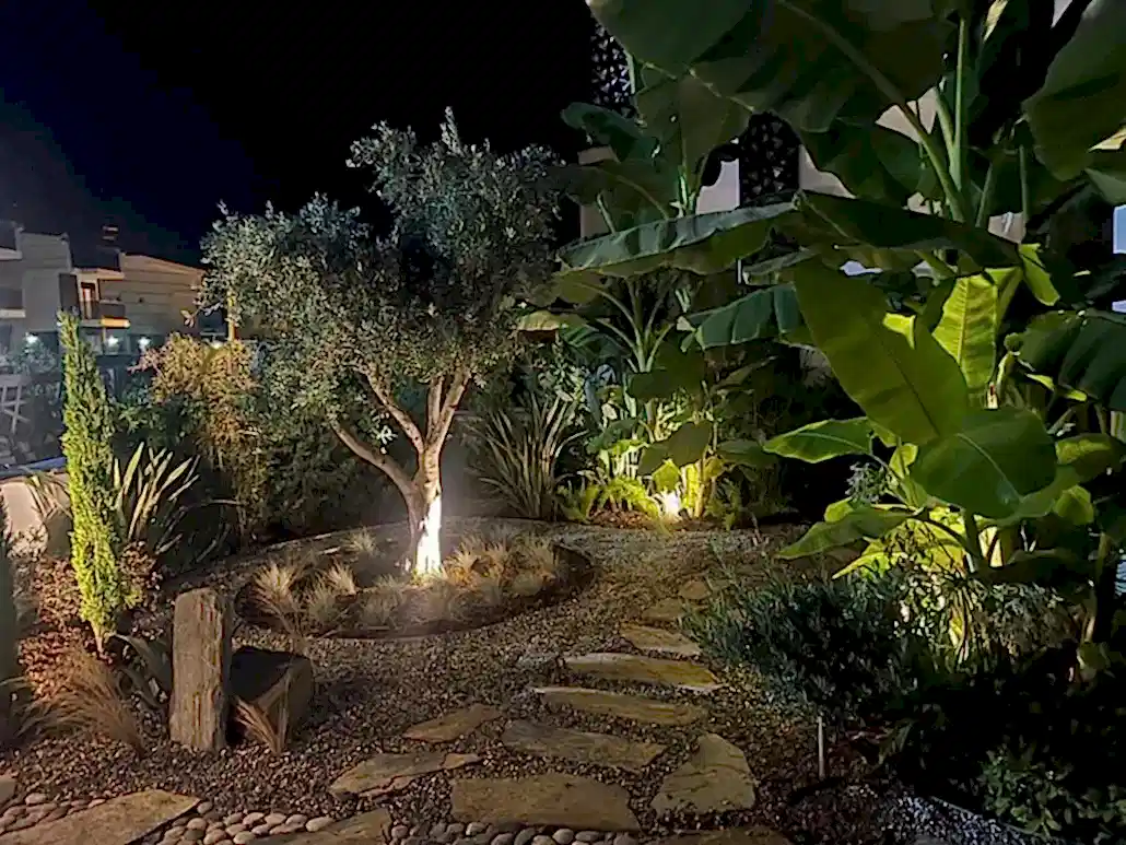 - Spot Aydınlatmalar : Ağaçları, çalı gruplarını, heykelleri veya mimari detayları aşağıdan veya yukarıdan aydınlatarak dramatik ve estetik bir etki yaratır.